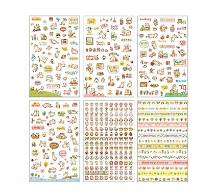 Freessom 6 Fiches Autocollant Stickers Adhesif Transparent Motif Mignon Kawaii Chat Petit Personnage Fille Animaux Cartoon Dessins Decoratif
